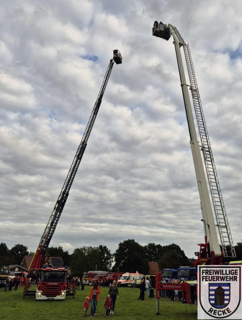 Anlässlich des 100 jährigen Jubiläums der Löschgruppe Halverde, wurden wir zum Tag der offenen Tür des neuen Feuerwehrgerätehauses Hopsten-Halverde eingeladen. Wir durften unsere DLK 23/12 (Drehleiter mit Korb) ausstellen und vorführen. - Kirmes 2025